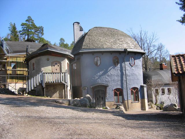 Här finns Antroposoferna, och deras skola Solvik, dom har för sig att människor blir lyckliga av att finnas i runda former