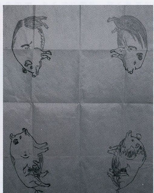 Skriv ut detta som A4, vik sedan som du ser vecken på bilden och Adolf framträder